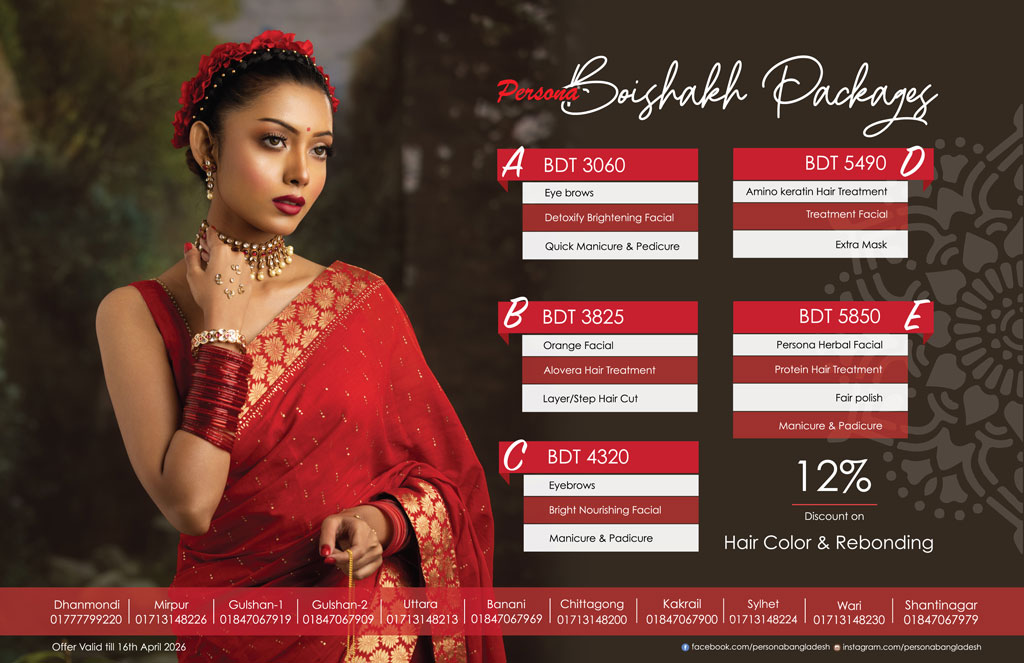 Since 1998, Persona has been a pioneer in beauty services in Bangladesh. Over the years, we’ve grown to serve millions of customers through our ladies’ and men’s outlets. With a passionate team of 3,000+ people and sister brands like Persona Health, Persona Academy, Spring Spa, and Canvas Magazine, we’re all about building an ecosystem where we carefully cater to our precious clients a tailored experience because you deserve to feel special all the time.